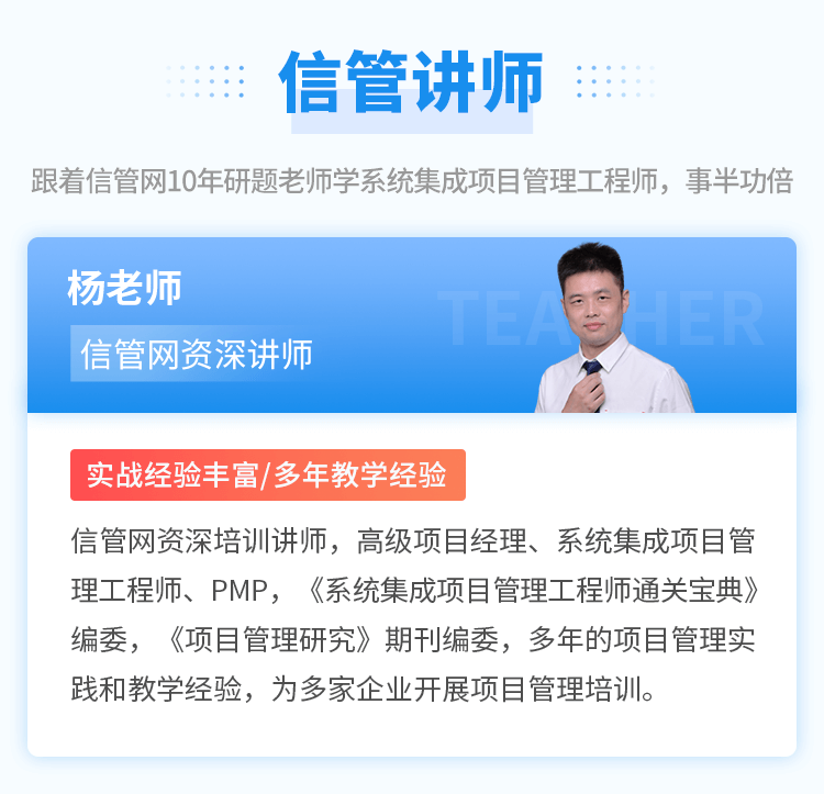 當(dāng)前位置:信管網(wǎng) >> 系統(tǒng)集成項目管理工程師視頻培訓(xùn)課程 >> 系統(tǒng)集成項目管理工程師自學(xué)班(第3版新課程)
