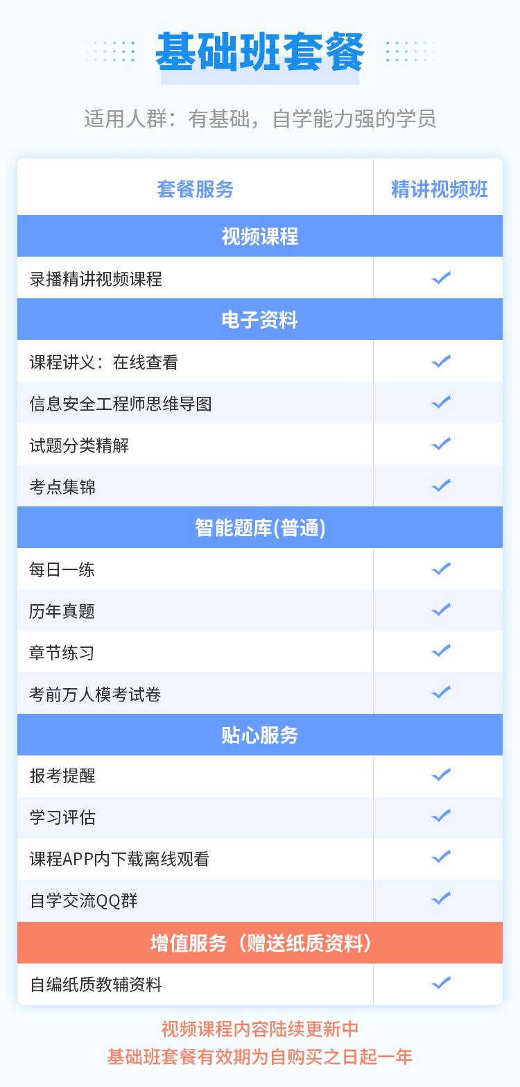 包含精講視頻課程、紙質(zhì)內(nèi)部輔導(dǎo)資料、考前點(diǎn)睛資料、智能題庫隨時刷題、考前模擬試卷、電子資料輔助學(xué)習(xí)等。