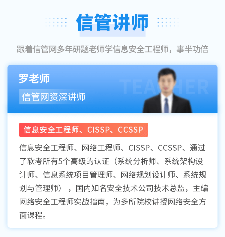 當(dāng)前位置:信管網(wǎng) >> 信息安全工程師視頻培訓(xùn)課程 >> 信息安全工程師精講視頻班